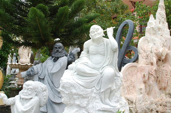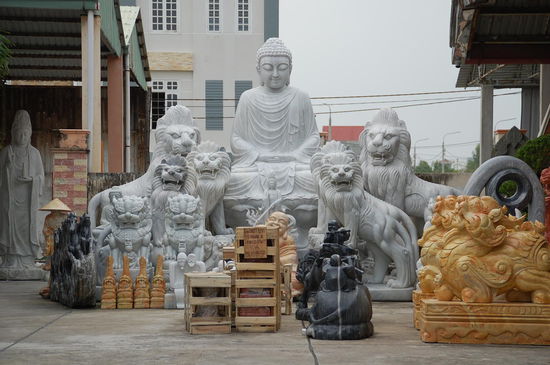 Bei den Marble Mountains - den Marmorbergen sind wieder jede Menge Souveniershops. Überall das Selbe, der Fahrer kann was essen und trinken, und der Fahrgast soll kaufen, wobei unserer sagte, wir sollen nix kaufen, ist zu teuer hier.