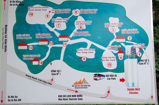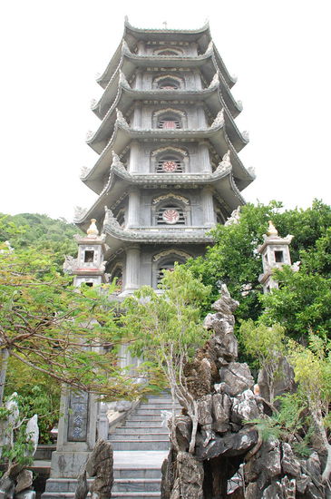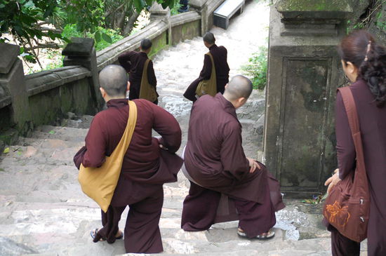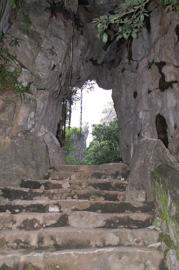 Jetzt hat uns der Fahrer zum Marmorberg gefahren, wir haben uns den Luxus geleistet und sind mit dem Lift nach oben. Hier haben wir die Ami's getroffen, die auch mit uns in der Halongbucht waren. Auch hier wird wieder gebaut, es war erst nicht ganz einfach auf den richtigen Weg zu kommen.