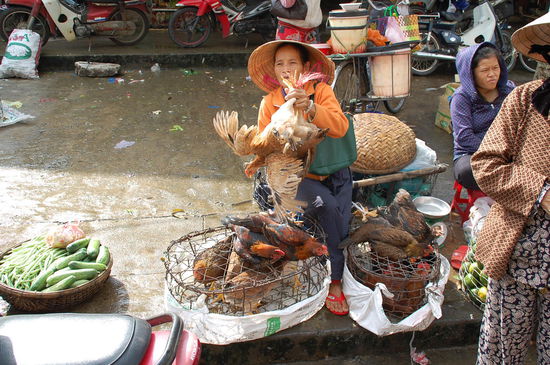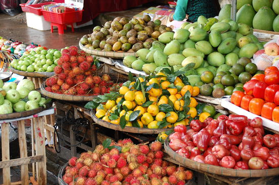 Wir kommen auf unserem Weg dann gleich auf dem grossen Markt vorbei, wo man uns gleich am frühen Morgen bedrängt, doch was zu kaufen. Es gibt Kleidung, Obst, Gemüse, Fisch, Fleisch und alles was man sonst noch so braucht, oder eben nicht.
