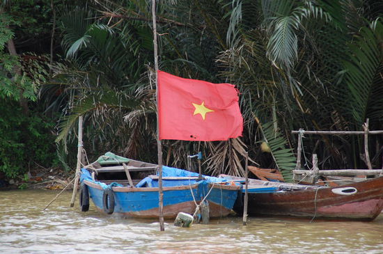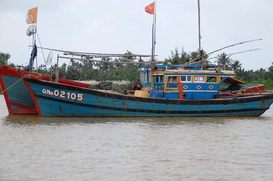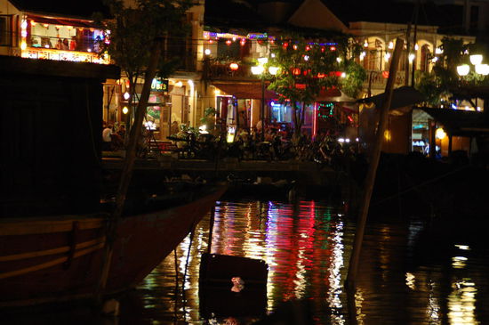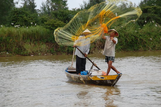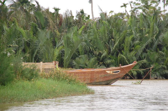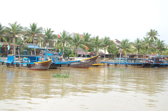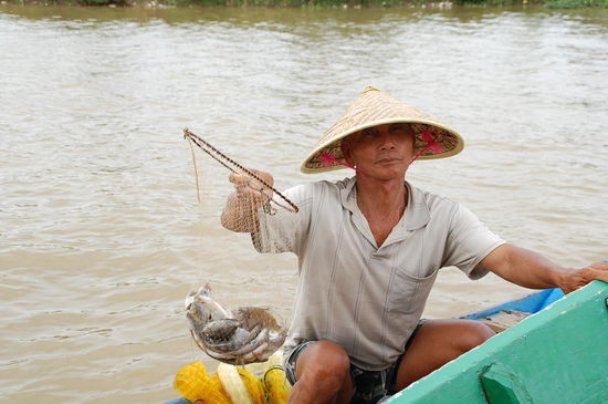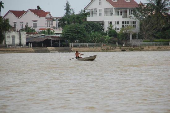 Zur Mittagspause haben wir uns für eine Stunde ein Boot gemietet und sind ein wenig den Fluss rauf und wieder runter geschippert. Unterwegs trifft man auf ein paar Fischerboote...