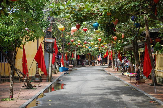 Hier in Hoi An gibt es einige alte Gebäude, die man gegen Gebühr besichtigen kann. Man kauft sich ein Altstadtticket für 120.000 Dong, da sind 5 Eintrittskarten dran, die kann man nach Belieben einlösen. Wir sind nach dem Frühstück mehr oder weniger ohne Ziel durch die Stadt gelaufen. Der eigentliche Altstadtbereich ist nicht wirklich gross und verlaufen kann man sich schon grad garnicht. Hier einfach ein paar Fotos
