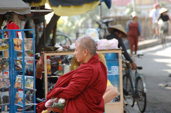 Zum Frühstücken sind wir wieder Richtung Altstadt gelaufen. An der belebten Kreuzung zum Markt haben wir uns in ein Cafe gesetzt, um dort zu frühstücken. Es ist schon wieder drückend heiss. Vorher haben wir soweit alles zusammen gepackt, das Zimmer müssen wir erst um 12 Uhr räumen, um 11.30 Uhr werden wir abgeholt, passt super.