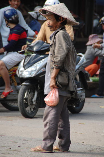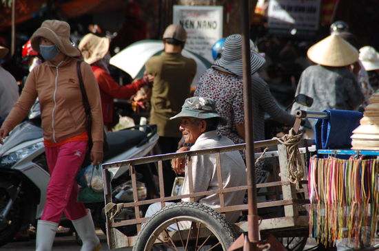 Dieser Fahrer hatte sich auch der Langsamkeit verschrieben, aber er hat uns ordentlich zum Bahnhof nach Da Nang gebracht.