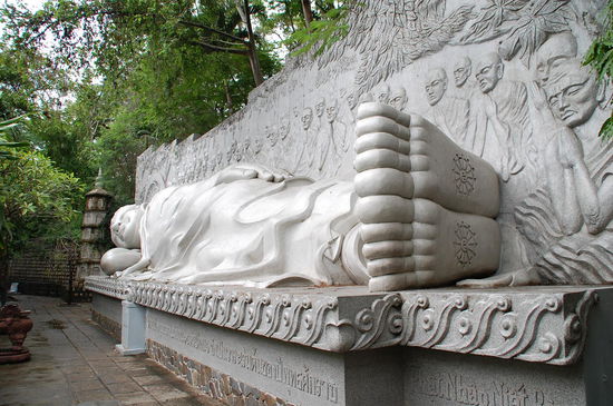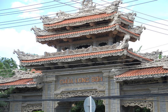 Nach ca. 1,5km sind wir dann an der Long Son-Pagode angekommen. Sie ist Hauptsitz der buddhistischen Organisation dieser Provinz. Hier ist auch eine Mönchsschule angeschlossen