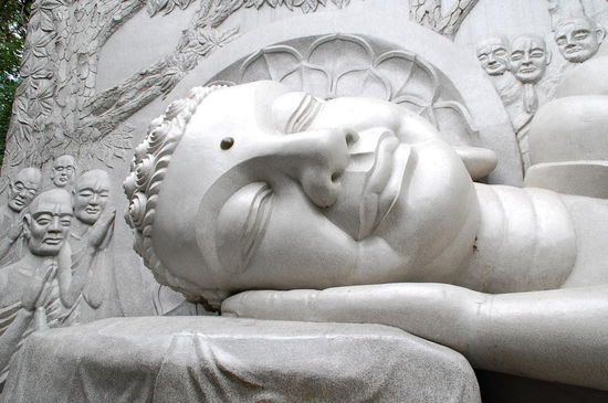 Auf halbem Weg nach oben kommt man an einem liegenden Buddha vorbei (Länge ca. 14 Meter)