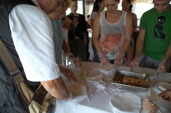 Um 10.15 Uhr gab es dann eine Cooking Class. Einen MiniKochkurs, wie man Frühlingsrolle macht. Natürlich gab es die dann auch später zu Mittag