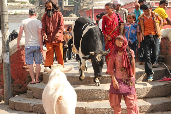 Kathmandu ist ne sehr quirlige, dreckige und imposante Stadt, die einiges zu bieten hat. Wir haben uns hier mit Diane aus New York, die wir in der Warteschlange fuers nepalesische Visa kennengelernt hatten, ein Taxi ins Touriviertel Thamel geteilt und sind dort erstma fuer zwei Naechte ziemlich ueberteuert untergekommen, bis wir ein Tag spaeter in der Freakstreet und ausserhalb Thamels, fuer ein Drittel des Geldes ein viel schoeneres Zimmer gefunden haben. Die Freakstreet verdankt ihren inoffiziellen Namen der Tatsache, das hier in den 60ern und 70ern die ganzen Hippies abhingen, auf ihrem langen Landweg von Europa ueber Istanbul, Teheran, Kabul, Peschawar nach Goa.