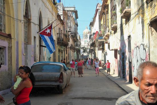 Havanna ist in jederlei Hinsicht das Superlativ Kubas und wartet mit den meisten Bettlern, den meisten der alten Autos, den meisten Zigarrenverkäufern, den coolsten Bars, den abgefucktesten Häusern, den kuriosesten und absolut nicht nachvollziehbaren Situation usw. auf. Definitiv eine sehr individuell und sehenswerte Stadt und wir sind froh, diese jetzt noch einmal gesehen zu haben, bevor der von Vielen herbeigesehnte und von Anderen gefürchtete Wandel und Kapitalismus kommen wird und die Stadt wahrscheinlich wie all die anderen Metropolen der Welt mit all seinen Fastfoodketten und einheitlichen Kleidungsgeschäften auf eine von vielen Städten reduzieren wird. Vom Stadtbild her hat uns Havanna immer wieder an den alten Teil von Panama City erinnert, weil auch dort extrem viele, vom Zerfall bedrohte Kolonialbauten das Stadtbild säumen. Hier war ich endlich mal wieder Skateboard fahren möglich, jedochj bin aber fast überall von den stark präsenten Polizisten verscheucht worden, bis ich`s dann irgendwann aufgegeben habe. Ein paar andere Skater habe ich darauf angesprochen, aber für die scheint das eher ein Katz und Maus Spiel zu sein, worauf ich während unserer begrenzten Zeit nicht wirklich Lust hatte.