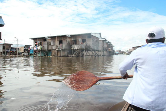 Gleich am ersten Tag haben wir uns noch den ziemlich großen Markt im relativ armen Stadtteil Belèn angesehen, auf dem man wohl so ziemlich alles kaufen kann, was der umliegende Urwald zu bieten hat. Deshalb werden leider auch sämtliche lebenden Tiere oder schon zum Essen verarbeitete angeboten. Im Anschluss daran haben wir ne kleine Bootstour durch das, jährlich für sechs Monate unter Wasser stehende Wohngebiet unterhalb des Marktes gemacht, deren Bewohner überraschenderweise gut mit der doch relativ belastenden Wassersituation umzugehen scheinen. Belèn ist angeblich die größte Stadt/Gebiet der Welt, das ausschließlich auf Pfählen errichtet ist.