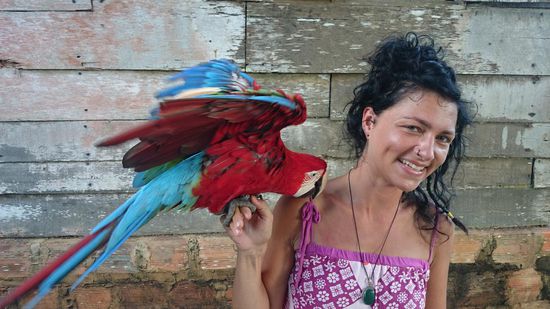 leider auch ein gefangener Tukan im Käfig und n Faultier außen am Käfig. Im Haar hatte die Verkäuferin noch nen kleinen Affen liegen. Ziemlich traurig solche Tiere und vor allem auch unter solchen Bedingungen hier kaufen zu können...