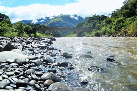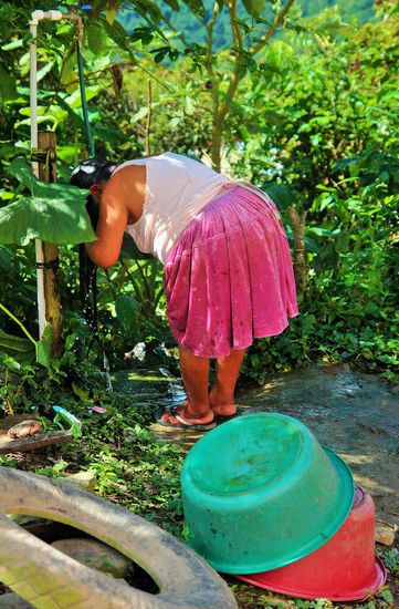 Jedenfalls haben wir es trotz der Eiseskälte und des kurz nach dem Start einsetzenden Regens überlebt und hatten ein paar aufregende Stunden. Immer wieder hält man an um Fotos zu machen, begutachtet die Kreuze am Strassenrand, hinter denen es hunderte Meter steil den Abgrund nach unten geht und keinerlei Absperrung einen daran hindern würde, die Schotterpiste ungewollt zu verlassen. Irgendwann dann im mittlerweile heissen Tal, knapp 3500 m tiefer angekommen, gab`s in nem Hotel noch was zu essen und ne heisse Dusche, bevor dann die vollbepackten Vans (innen die Touris & auf dem Dach die Fahrräder) zurück nach La Paz fuhren. Wir haben uns allerdings entschieden der Kälte einen Streich zu spielen und eine Nacht im viel wärmeren Coroico zu bleiben. Coroico ist ne schöne tropisch anmutende Stadt in den „Yungas“, so der Name der Gegend nordöstlich von La Paz und gleichzeitiger Ausgangsort für Touren in den Dschungel. Leider hat es bei uns die ganze Zeit bis zum Abend durch geregnet und wir konnten die neuerliche Wärme nicht so ganz genießen. Trotzdem wollten wir die Zeit hier einigermaßen sinnvoll nutzen und so haben wir für den nächsten Tag bei einem Einheimischen für 10 US-$ eine Tour gebucht, die uns durch den Dschungel nach Tocana führen sollte, wo u.a. noch einige Afrobolivianer leben, die vor hunderten von Jahren von den Spaniern als Sklaven hier her gebracht wurden. Abends haben wir noch ein bolivianisches Restaurant gefunden, wo es schweizerisches Käsefondue gab und dann ging`s auch irgendwann schon wieder in das billigste Hostel der Stadt, in unser Schimmelloch zum Schlafen.