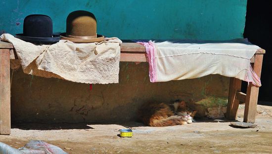 Auch hier hab ich mich auf die erschwerliche Reise gemacht, um dem lokalen und gleichzeitig weltweit höchsten Skatepark abzuchecken, der erst vor kurzer Zeit fertig gestellt wurde und im erhabenen und nochmal 400 m höher gelegenen „Parque Pura Pura“, etwas oberhalb der Stadt liegt. Zwar fahren hier auch alte Busse den steilen Berg nach oben, doch man weiß nie so richtig welcher Bus der richtige ist, so dass ich lieber gelaufen bin. Oben angekommen, war der Park direkt ma geschlossen und die Mission wurde auf den nächsten Tag verschoben, was dann auch geklappt hat. Ansonsten waren wir hier noch im „Valle de la luna“, einer bizarren Felslandschaft, nur ein paar Minuten außerhalb von La Paz und haben an unserem vorletzten Tag hier, dem Riesenmarkt in El Alto noch einmal einen Besuch abgestattet. Leider wird hier auch ziemlich viel Schrott, Gefälschtes und sonstiges langweiliges Zeux verkauft, so dass wir nach einer geschätzten Stunde das Gefühl hatten, alles gesehen zu haben.