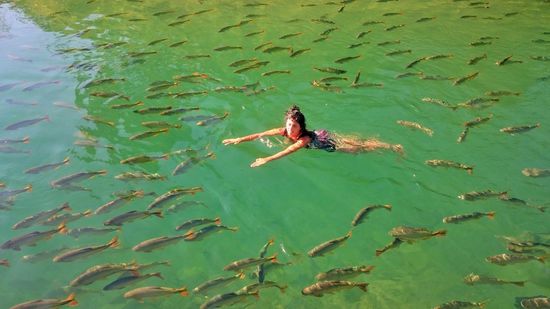 mit Fischen die so hungrig waren, dass es schon langte einfach nur ein blatt an den stock zu hängen und sofort fand sich wieder ein springender fisch