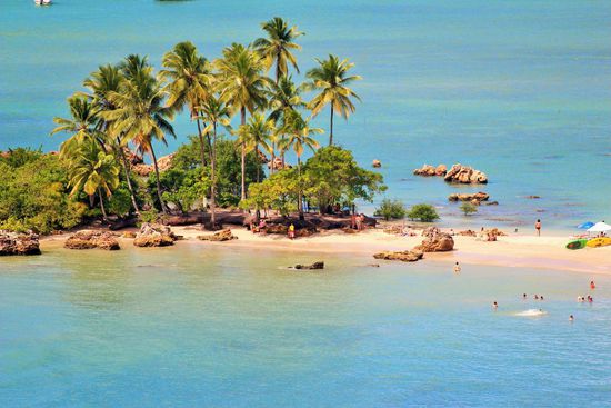 Glücklicherweise war unser nächster Stop nicht allzu weit entfernt und so gings per dreistündigem Bus weiter nach Valenca, von wo aus wir die Fähre bzw. den Hafen finden mussten, um eines der stündlich ablegenden Boote auf die „Ilha Tinhare“ nach Morro de Sao Paulo nehmen zu können. Als wir in Valenca angekommen sind hat es direkt mal wie aus Eimern zu Schütten angefangen, so dass dies erstmal eine Zwangspause für uns bedeutetet. Irgendwann dann wurde das Wetter ein bisschen besser, d.h. es regnete nur noch normal und wir starteten unseren Fußmarsch in Richtung 2km entfernten Hafen. Mittlerweile sind die Rucksäcke so schwer, dass man nach 10 min schon taube Beine unter dem Gewicht bekommt und weitere 10 min. später leicht anfangenden Kreislaufstress. Taxis sind hier in Brasilien leider auch ziemlich teuer und so ist das schon seit längerem keine Option mehr für uns. Irgendwann dann aber fanden wir die Ablegestelle der Boote und kurze Zeit später sollte auch schon ein Boot für günstige 9 Rl`s auf die ca. 1 Stunde entfernte Insel fahren.