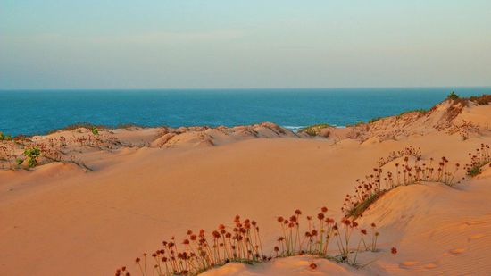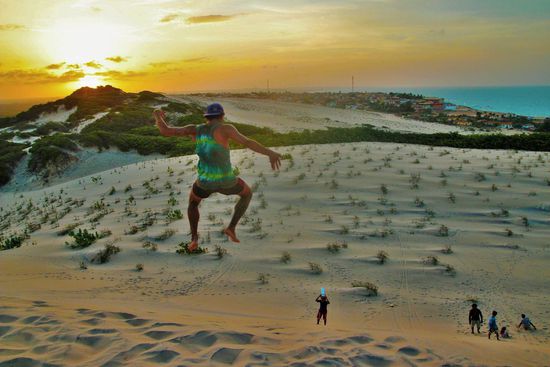 Abends gings noch auf die Dünen, um den nahenenden Sonnenuntergang nicht zu verpassen und die einheimischen Kids dabei zu beobachten, wie sie mit irgendwelchen selbstgebauten Brettern die Dünen runterheizten.