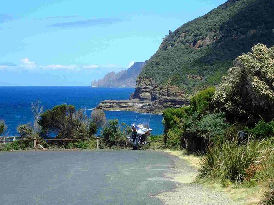 In der Nacht regnet es mal wieder, doch als wir bereit zur Abfahrt für den heutigen Wandertag sind, strahlt uns schon die Sonne mit 23° an. Wir müssen die 23 km zurück in den NP fahren. Dort hängen noch einige Dunstwolken über den Bergen. Somit beschließen wir erst den kurzen Weg auf den Leuchtturm zu wandern. Gegen 11.00 Uhr ist es dann so weit – 11km in die weltberühmte Weinglass Bay stehen heute am Plan. Hoch motiviert gehen wir los – der Aufstieg zum Aussichtspunkt ist schon mal die erste Herausforderung für mich. Nicht nur, dass mir die Luft ausgeht, tummeln sich hier Scharen von Chinesen herum. Die haben im Moment Ferien über ihr Neujahr. Scheinbar ist Tasmanien ein sehr beliebter Urlaubsort für sie – angeblich war erst vor kurzem der chinesische Präsident auf Urlaub hier, also dürfen die treuen Untertanen auch nicht fehlen. Da es bekannter weise viele von denen gibt, ist schon mal sicher die Hälfte hier. Nachdem ich endlich wieder Luft bekomme und wir die faszinierende Aussicht genossen haben geht es bergab an den Strand der Weinglass Bay, damit Arno dort auch baden gehen kann – langsam wird es Einseitig mit der Baderei *gg*. Gesagt getan, danach wandern wir über den Isthmus Track zum Hazard Beach. Ich bin mir im Moment noch nicht sicher was mir lieber ist, schnaufen oder über Stock und Stein bergab zu laufen. Natürlich wird dort auch wieder gebadet während ich schon mal am Strand entlang gemütlich weiter gehe. Danach kommt ein ca. 3 stündiger Marsch immer leicht bergauf und bergab zurück zu unserem Ausgangspunkt. Leider ersparen mir auch meine neuen Schuhe nicht die aufkommende Müdigkeit meiner Beine. Als wir dann endlich gegen 16.00 Uhr wieder zurück am Parkplatz beim Motorrad sind bin ich doch ziemlich müde – auch Arno reicht es nun schon. Jetzt habe ich mir einen Kaffee und Kuchen redlich verdient – ab ins Kaffeehaus. Leider gibt es nicht wirklich Kuchen, aber ein Heidelbeermuffin tut es eben im Notfall auch – ich freue mich schon auf morgen, da kann ich wahrscheinlich nicht mal aus dem Bett. Morgen ist traumhaftes Wetter mit 29° angesagt, und somit möchte Arno einen Badetag einlegen – manchmal braucht Frau eben nur ein wenig Glück.