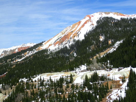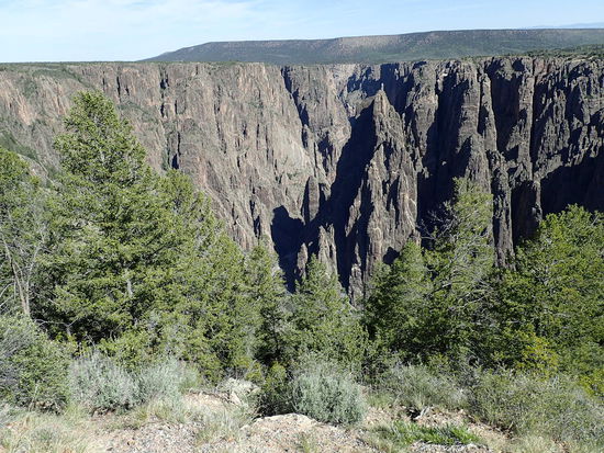 Ich bin mal wieder einmal vollends begeistert von dem was ich hier sehe und vor allem fühle – es wird auf knapp 3000m doch empfindlich kühler, obwohl die Sonne vom Himmel lacht. Rechts und links der Straße trotzen noch einige Schneefelder hartnäckig der Sonne. Es ist so unglaublich schön, die Berge schimmern teilweise in den verschiedensten Farben – je nachdem, welche Rohstoffe sich in ihnen befinden – rostrot, gelb bis grün oder einfach braun. Manchmal bewaldet, oder doch nur die blanke Erde oder Stein, meine Begeisterung ist enorm. So geht es den ganzen Nachmittag in den San Juan Bergen dem süd-westlichen Teil der Rocky Mountains dahin. Nachdem wir uns für heute keinen fixen Endpunkt gesetzt haben, entscheiden wir uns kurzfristig für den Black Canyon Nationalpark, der unseren Weg kreuzt, und es bereits früher Abend ist. Der Campingplatz liegt auf 2500m in einem wunderschönen Teil des Parks. Auch hier ist die gleiche Vorsicht gegenüber dem „Wild life“ (Bären) gegeben. Somit wird nach dem Abendessen alles in die Boxen verstaut, dass ja Nichts sein kann. Nach Einbruch der Dunkelheit geht es auch hier mit den Temperaturen sehr schnell in den unteren Bereich des Thermometers, sodass sich ziemlich bald alle Besucher in die Zelte zurück ziehen, da ab 21.00 Uhr keine Stimmen mehr zu vernehmen sind – nur mehr das Klappern der Zähne ist über das ganze Gelände zu hören .