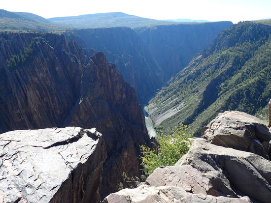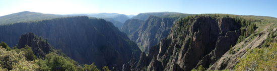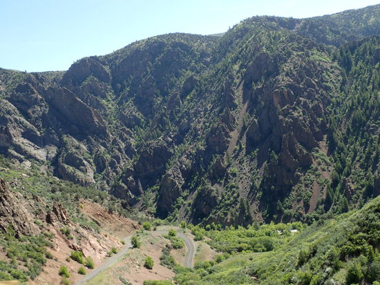 Am nächsten Morgen nach dem Frühstück packen wir alles zusammen. Wir lassen den Hänger jedoch noch stehen, da wir erst einmal den NP erkunden möchten. Wir fahren die einzelnen Aussichtspunkte an, welche uns einen unglaublichen Blick in die Schlucht geben. Ein kleiner Adler zieht in der Schlucht seine Kreise auf der Suche nach etwas Nahrhaftem. Rechts und links des Gunnison Rivers - einem Zufluss des Colorado River – ragen die extrem steilen Wände hoch. Zum Gunnison River selbst gelangt man über eine sehr steile Straße mit Steigungen bis zu 16 Prozent und vielen Haarnadelkurven. Fahrzeuge über 6,70 m Länge sind hier nicht zugelassen. Für uns ist diese Straße jedoch kein Problem, nein, sie ist die pure Fahrfreude für Arno und mich. Es ist unglaublich, erst den Blick in die Tiefe, um dann den Blick aus der Tiefe zu genießen. Zum Abschluss sehen wir uns im Besucherzentrum einen Film über die mühsamen Bauarbeiten zur Errichtung des Staudamms an. Doch nur dieser konnte das Land urbar machen, und somit das Überleben von Generationen sichern. Weiter geht es den ganzen Tag bergauf und bergab, Kurven über Kurven und die Landschaft ist wunderschön anzusehen. Nachdem es den ganzen Vormittag doch etwas kühl ist, wird es ab Mittag wieder angenehm warm mit um die 30°. Wir befinden uns immer noch zwischen 2000 und 2500m und somit lachen uns ab und an Schnee bedeckte Bergspitzen entgegen. Von nun an ist unser Ziel der Yellowstone NP. Da es bis dorthin noch ca. 1200km sind, werden der Rest vom Donnerstag sowie der Freitag zum Überbrücken von Distanzen verwendet.