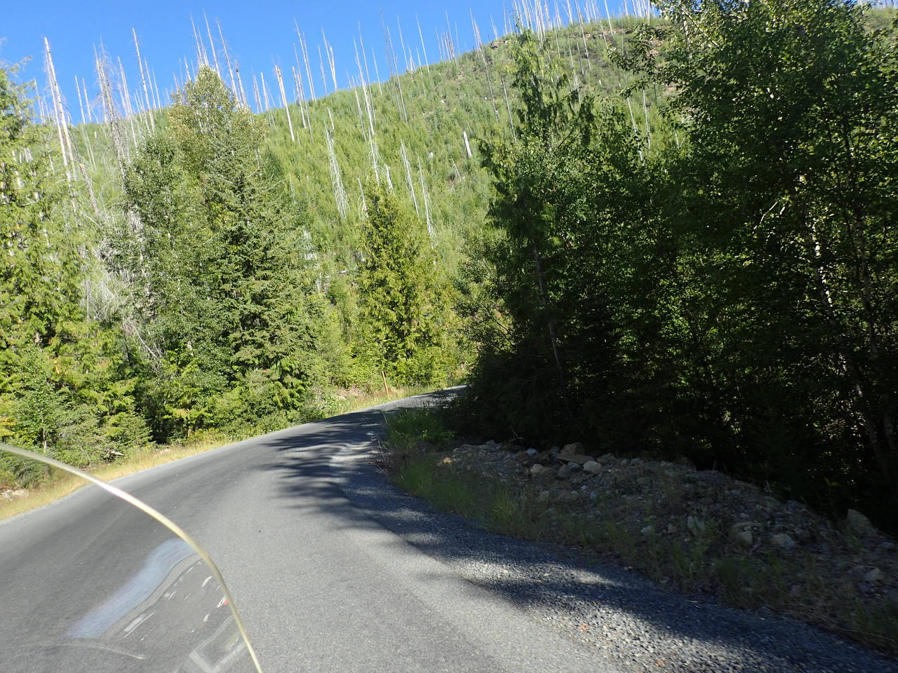 Da mir Arno bei der Abfahrt heute Morgen um die 30° für den Abend versprochen hat, muss ich ihn bei 22° mal kurz daran erinnern. Doch schon nach einiger Zeit in Montana steigt und steigt das Thermometer auf 31° - oh wie fein. Gegen 17.00 Uhr machen wir uns auf die Suche nach einem Schlafplatz und werden am Hungry Horse Stausee fündig oder auch doch nicht. Leider sind alle drei Campingplätze ausgebucht und somit stellen wir uns auf einen geschotterten Parkplatz etwas abseits der Straße, wo wir nicht die Einzigen sind. Arno erholt sich von dem langen Tag bei einem Sprung in den See, den ich ihm wie immer sehr vergönne. Nach dem Abendessen schreibe ich an meinem Bericht und Arno arbeitet die Route für morgen aus, als wir Besuch von einem Reh erhalten, welches ich vorher schon im Wald beim Duschen kennen gelernt habe. Ganz gemütlich spaziert es rund um das Zelt, beschnuppert alles, um dann wieder abzumarschieren – unglaublich lieb.