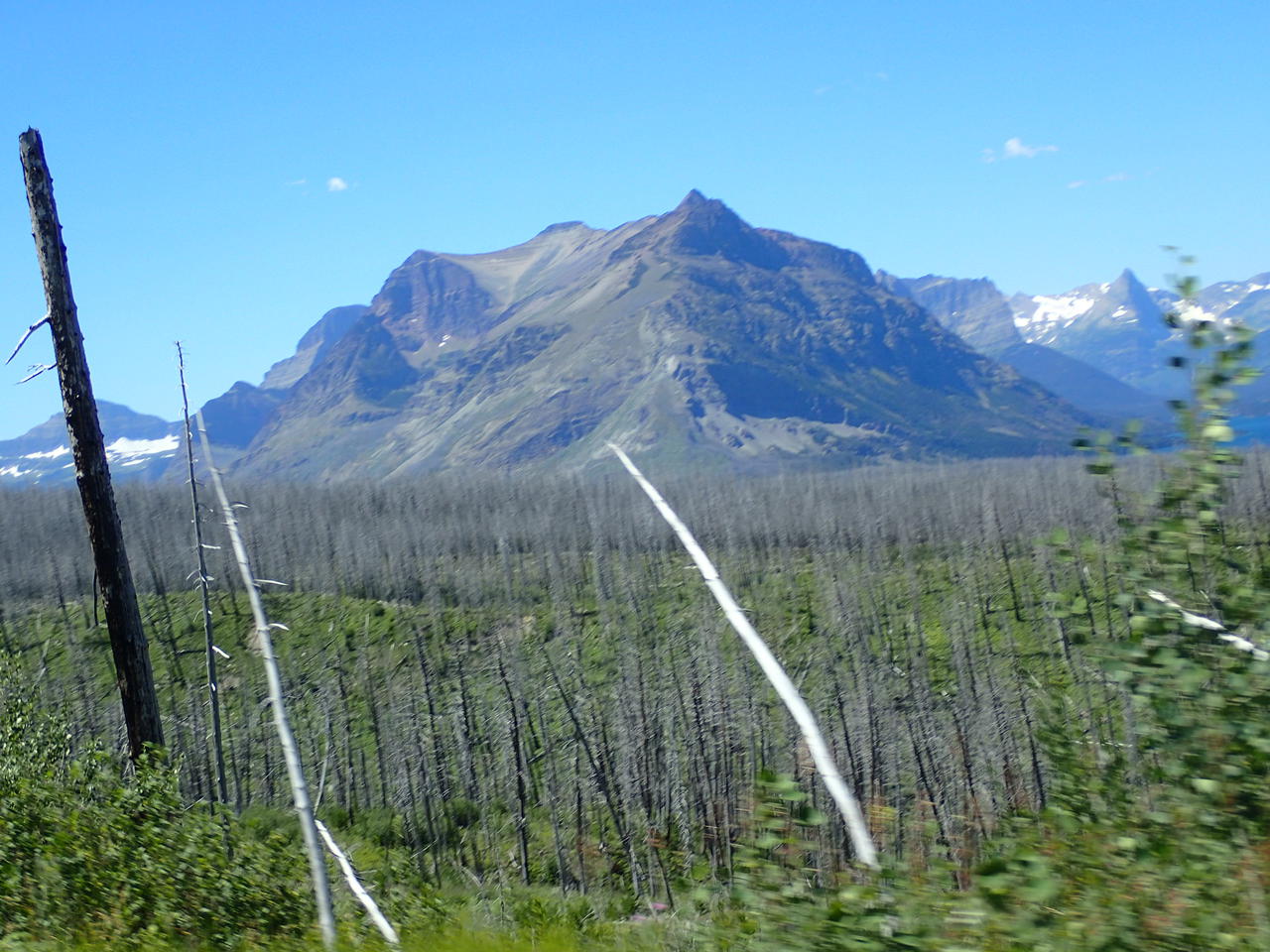 Gegen 9.15 Uhr passieren wir die Einfahrt zum NP und wir haben Glück, dass wir so zeitig dran, da nur eine kleine Schlange steht – angeblich gibt es hier in der Saison bis zu einer Stunde Wartezeit. Unser erster Halt ist beim Besucherzentrum um uns Einblick über den NP zu holen. Danach führt die Route am Lake McDonald entlang, um einige Stopps für kleine Spaziergänge und Fotos einzulegen. Danach rauf auf den 2025m hohen Logan Pass, wo ein zweites Besucherzentrum steht und die Möglichkeit besteht zum Hidden Lake zu spazieren mit der 99% Garantie Grizzlys zu sehen – ja aber eben nur theoretisch, denn praktisch ist der Parkplatz wegen Überfüllung geschlossen, und es wird leider keine andere Parkmöglichkeit angeboten. Sehr schade, aber was soll´s, so parken wir eben 500m weiter, setzen uns auf einen großen Stein und bewundern die atemberaubende Bergwelt bei Sonnenschein und tiefblauem Himmel. Nun begleiten uns ja schon seit einiger Zeit die Kanadischen Rocky Mountains, aber dies hier ist wirklich der absolute Höhepunkt – ich kann dem Reiseführer nur zustimmen. Weiter geht es nun zum Saint Mary Lake um danach den Park zu verlassen. Für dieses Erlebnis haben wir einen Umweg von 500km in Kauf genommen, die es auf jeden Fall wert waren. Sollte jemand von euch eine USA Reise planen, bitte unbedingt herkommen. Danach wird es etwas öd, nun geht es durch die Kornkammer Montanas. Die nächsten 250km nur Getreidefelder die bereits gedroschen sind, oder in den nächsten Tagen werden. Na ja was soll´s, Korn wird auch dringend gebraucht – von den Bergen alleine wird niemand satt. Für heute Abend wurde mir ein Campingplatz mit warmen Duschen versprochen. Doch wie das Leben so spielt sehen wir etwa 5km vorher eine Abzweigung auf einen Stausee mit Campingmöglichkeit – ade warme Dusche. Schnell ist das Zelt aufgestellt und nun heißt es – Margit, ab in den See – brrr ist das kalt, max. 23° ich bin soooo arm. Nein im Ernst, es ist traumhaft bei 36° Außentemperatur im See schwimmen zu gehen. Es ist so angenehm, dass ich es gleich zwei Mal mache – dann reicht´s, übertreiben ist auch nicht gut. Unser Zelt steht etwa 40m über dem See und wir genießen diesen Blick den ganzen Abend bis die Sonne langsam untergeht.