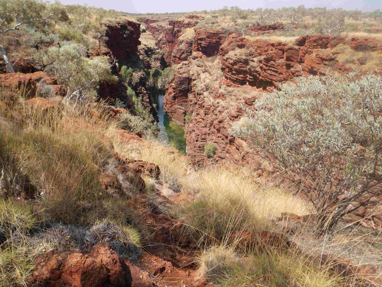 In der Hamersley Range, im Zentrum der Pilbara, liegt der ausgedehnte Karijini-Nationalpark. Er bietet eine spektakuläre, raue Kulisse in einer uralten geologischen Formation. Mit 627.445 ha ist er der zweitgrößte Nationalpark Westaustraliens. Die trockene, staubige Steppe des Hochplateaus wird durchzogen von windungsreichen Flussläufen, die plötzlich in bis zu 100 m tiefe Schluchten stürzen und Bassins füllen, in denen das klare, frische Wasser für eine erstaunliche Flora und Fauna sorgt. Die Südhälfte des Nationalparks ist weitgehend unerschlossen. Der Tourismus beschränkt sich auf die atemberaubenden Schluchten im Nordteil. Mount Meharry ist mit 1.245 m der höchste Berg des Nationalparks.
