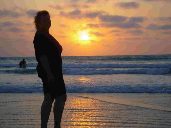 Nachdem bei Woolworth auch wieder der Kühlschrank aufgefüllt wird ist Eile geboten, da wir uns noch unbedingt den Sonnenuntergang um 17.50 Uhr am berühmten Cable Beach - 22 km weißer Sandstrand - ansehen möchten. Hier ging mit dem heutigen Tag die Badesaison zu Ende, da das Wasser bereits 30° hat und die Quallen im Kommen sind. Da im Moment des Sonnenuntergangs das Wasser aufgrund der Ebbe sehr weit draußen ist, gehen wir ca. 300m bis wir das Wasser erreichen - traumhaft warm. Und so geht bereits die dritte Woche unserer Reise zu Ende.