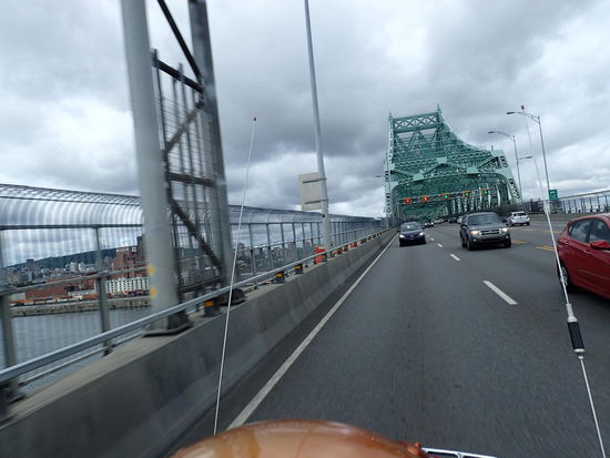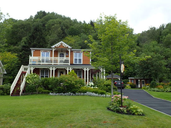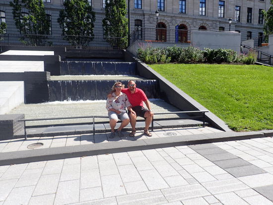 Den ganzen Dienstagvormittag verbringen wir mit der Organisation des Heimtransports der Motorräder. Hoffentlich klappt alles wie geplant, aber das wird sich noch herausstellen. Hier am Platz steht ein Paar aus Quebec nebenan, welches uns nach einem gemütlichen Plausch – nur mit Arno, da ich kein Französisch spreche und sie kein Englisch, an Deutsch gar nicht zu denken – spontan für das Wochenende in ihr Ferienhaus auf den Lac St. Jean einlädt. Da dieser genau auf unserer Strecke liegt sagen wir mit Vorbehalt zu. Gegen Mittag geht es los in das 150km entfernte Montreal. Dort erwartet uns heute Abend ein Goldwinger Pärchen, das wir im Glacier NP kennen gelernt haben. Ich bin immer wieder aufs Neue erstaunt, wie Gastfreundlich die Menschen welche wir so eben mal bei einer Pause „auf der Straße“ kennen lernen sind. Du plauderst ein paar Minuten gemeinsam und schon wird die Einladung ausgesprochen – so auch in diesem Fall. Da bis zum Abend noch genügend Zeit ist halten wir auf halbem Weg an einem Aussichtspunkt im Grünen um dort das schöne Wetter zu genießen. Während ich Bericht schreibe sucht Arno einige Routen für die nächsten Tage auf der Karte, bzw. hält er zwischendurch „small talk“ mit diversen Personen die auch hier Pause halten. Das Haus von Yves und Sylvie liegt auf einer kleinen Insel etwa 30km außerhalb von Montreal, und ich bin begeistert von den vielen schönen Anwesen. Da hier in Kanada ja überhaupt kein Platzproblem herrscht, haben es mir die großen Gärten rund um die Häuser angetan. Nur keine Bedenken, hier in diesem Außenbezirk kümmert sich so gut wie niemand persönlich um die Pflege, da laufen massenweise Gärtner durch die Gegend, welche einen Traum aus jedem einzelnen Anwesen zaubern. Überhaupt beeindrucken hier in der Provinz Quebec die schönen Anwesen. Überall blühen die Blumen in den schönsten Farben, der Rasen ist perfekt geschnitten und die Häuser ob alt oder neu wirken sehr gepflegt.