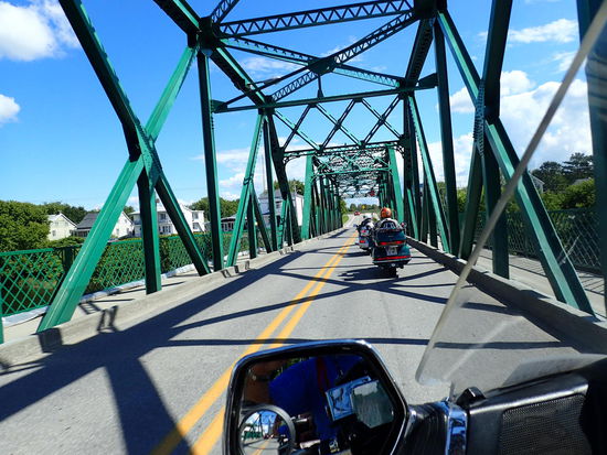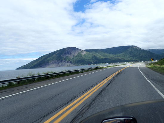 Na ja, besser ist so ein Sache – sagen wir mal es schüttet nicht mehr und somit beschließen wir heute trotz Regen weiterzufahren, da sich die Schlechtwetterzelle genau über dem See hält und es eigentlich auf dem Radarbild rundeherum besser aussieht. Und so ist es dann auch, langsam hört der Regen auf, und es nieselt nur mehr aus den tief hängenden Wolken. Gegen Mittag ist es dann schon richtig angenehm, und wir sind froh, dass wir diese Entscheidung getätigt haben. Gegen Mittag besichtigen wir einen Fjord, der vom St. Lorenz Strom herein führt. Dieser begleitet uns schon seit Montreal über Quebec bis hierher. Um 13.30 Uhr kommen wir am Fährhafen von St. Simeon an, wo um 14.45 Uhr die Fähre auf die Halbinsel Gaspé nehmen möchten. Leider hat uns Michelle die falsche Abfahrtszeit aus dem Internet herausgesucht und wir erfahren hier, dass diese erst um 16.30 Uhr ablegt. Macht auch nichts, so ist genug Zeit um Mittagspause zu halten und spazieren zu gehen. Gegen 16.00 Uhr sind wir beim Motorrad zurück und nun haben sich auch noch 2 Harleys eingefunden. Charles und Alain sind so begeistert von unserer Reise, dass sie uns ganz spontan für das Wochenende zur Akadien Parade nach Bouctouche - wo sie wohnen - einladen.