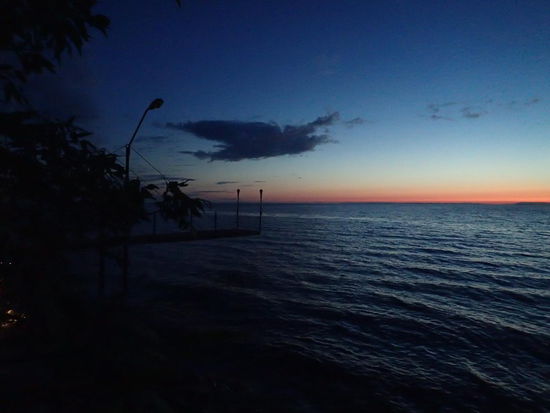Das Sommerhaus liegt direkt am See und der Blick ist traumhaft. Nach dem Zeltaufbau kühlt sich Arno im See ab, und am Abend wird ein Lagerfeuer gegen die Gelsenplage entzündet, während die Sonne rot am Horizont des Sees langsam untergeht. Für mich ist die Unterhaltung etwas einsilbig, aber Arno versucht natürlich immer zu übersetzen – und die meisten seiner Geschichten kenne ich sowieso, nun lerne ich sie eben auf Französisch. Am Montag in der Früh weckt uns das Klopfen des Regens auf unserem Zelt. Bis 10.00 Uhr regnet es ziemlich stark, aber dann reißt es auf und die drei Männer – Michelle, sein Sohn Matthias und Arno – begeben sich auf eine Seerundfahrt. Marlene und ihre 9jährige Tochter fahren zum Einkaufen in die Stadt. Somit kann ich 4 Stunden lang den See und die Ruhe für mich ganz alleine genießen – es ist grandios. Eigentlich ist für Dienstag die Weiterfahrt angedacht, doch leider regnet es ab Mitternacht so stark, sodass wir beschließen noch einen Tag zu bleiben, da es morgen besser werden soll.