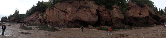 Am Parkplatz beim Eingang zu den Felsen treffen wir auf zwei Tiroler – erkennen wir am Kennzeichen – die sich auch ein Jahr Auszeit genommen haben, jedoch noch am Anfang ihrer Reise sind. Nach einem kurzen Plausch besichtigen wir gemeinsam den Meeresgrund. Wir sind genau zur richtigen Zeit angekommen – in einer Stunde ist der tiefste Wasserstand – und somit kein Problem am Meeresboden spazieren zu gehen. Unglaublich wie schön die Felsen hier geformt sind. Dies ist aber nur bei Ebbe sichtbar, da bei Flut das Wasser um unglaubliche – bis zu, kommt auf den Mond an - 21m steigt. Hier in der Bay of Fundy ist der höchste Gezeitenunterschied der ganzen Welt. Wir sind begeistert und laufen ca. 2 Stunden herum, bevor wir uns weiter auf den Weg machen, da es bereits gegen 17.00 Uhr ist und wir noch 45km zum Fundy Nationalpark haben, wo wir das Zelt aufstellen. In Alma angekommen stellen wir auch wieder das Vorzelt auf, da wir zwei Nächte bleiben werden und Regen vorhergesagt ist. Da die Tiroler auch hierher kommen gibt es am Abend einen Informationsaustausch bei einem Glaserl Wein.
