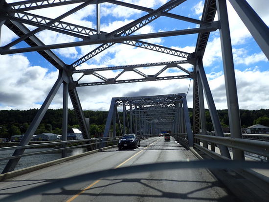 Wir sind schon so schnell mit dem Abbauen und Verstauen der Zelte, dass wir es selbst kaum glauben können. Es ist zwar noch ein wenig bewölkt als wir los fahren, aber die Sonne lässt nicht lange auf sich warten. Wir durchqueren den Park und schön langsam färben sich immer mehr Blätter in die herbstliche Stimmung. Gelb und rot blitzt es immer wieder zwischen den grünen Blättern durch. Heute Nachmittag werden wir von zwei Goldwingern in Millville erwartet, die wir vor drei Wochen auf einem Parkplatz auf der Gaspé Halbinsel kennen gelernt haben. Da wir eine Einladung bekamen, und das Wetter für morgen sehr nass angesagt wurde, haben wir diese sehr gerne angenommen. Die beiden reisen auch sehr viel und so gibt es am Abend einen intensiven Informationsaustausch bei einem wunderbaren Abendessen. Wie vorher gesagt beginnt es in der Nacht von Donnerstag auf Freitag zu regnen, heftig zu regnen, und dies hält bis zum späten Nachmittag an. Daher verbringen wir einen gemütlichen Tag im Haus und sind sehr froh, nicht auf der Straße oder im Zelt sein zu müssen. Gegen 15.00 Uhr wird es etwas heller und somit besuchen beschließen wir einen kurzen Ausflug mit dem Auto zu unternehmen. Wir besichtigen die einzige Sehenswürdigkeit welche es in der Umgebung gibt – die längste überdachte Brücke der Welt.
