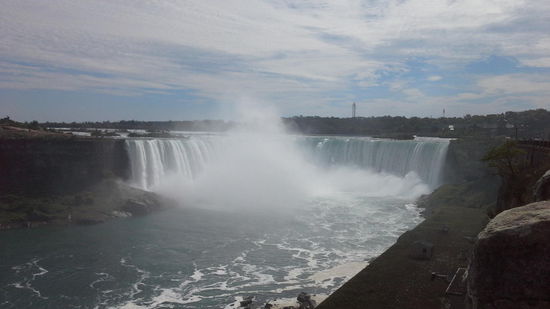 Was für ein Naturschauspiel. Eigentlich sind es ja zwei Wasserfälle, jener auf US Seite und jener auf Kanadischer Seite, wobei hier die Hälfte auch den Amis gehört, wenn ich das richtig verstanden habe. Mir egal, es ist ein unglaubliches Naturschauspiel dem Wasser zuzusehen, wie es das Gefälle herunter donnert und die Gischt weit zu spüren ist. Was für ein Abschlusshöhepunkt unserer Reise.