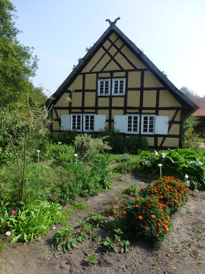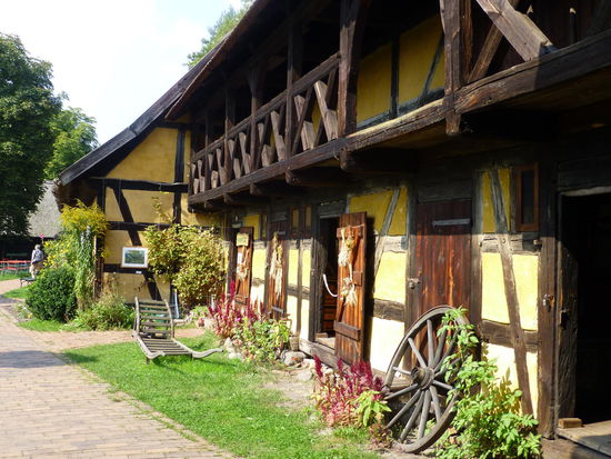 Das Wetter ist immer noch bestens und heute machen wir uns nach dem Frühstück noch einmal auf den Weg nach Lübbenau. In Lübbenau parken wir unser Auto und spazieren in das nahe gelegene Spreewalddorf Lehde. Dort gibt es ein Freilichtmuseum, welches wir gerne besuchen möchten. Trotz des wunderschönen Sonntags ist es am Vormittag noch relativ ruhig hier, auch wenn es im Kahnhafen bereits recht umtriebig ist. Unser Eindruck vom "Ballermann des Spreewalds" wird in Lübbenau erneut erfüllt. Auf schattigen Wegen gelangen wir vorbei am Schloss Lübbenau in gut 30 Minuten nach Lehde. Das pittoreske und idyllische Dörfchen ist allerdings eine einzige Gaststätte. Überall laden Biergärtchen und Restaurants zur Einkehr ein und die Plätze insbesondere rund um den Kahnhafen sind voll besetzt. Dagegen scheint sich außer uns niemand für das Freilichtmuseum zu interessieren. Wir schlendern fast alleine durch die interessante Anlage, Gästeführerinnen in den typischen, sorbisch-wendischen Trachten geben uns gerne Erklärungen und wir erfahren einiges über den Kahnbau, die Verarbeitung von Meerrettich und das Leben der Spreewälder in vergangenen Zeiten.
