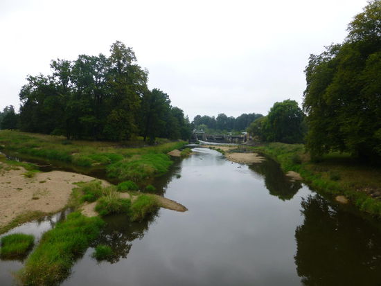Uns steht der Sinn eher nach Kultur und wir steuern den Fürst-Pückler-Park in Bad Muskau an. Ein Parkplatz direkt am Ufer der Neiße ist schnell gefunden und wir verschaffen uns anhand eines riesigen Planes erst einmal eine kleine Übersicht.