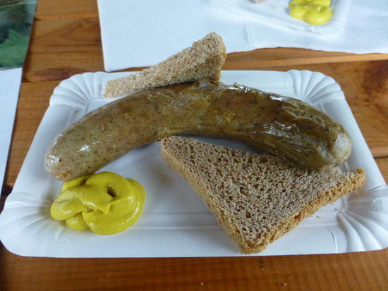 Nach einer schönen Spazierrunde im Trockenen, bei der wir keiner Menschenseele begegnen, gibt es beim Bio-Imbisswagen am Parkplatz noch eine Aueroxen-Bratwurst zum Abendessen. Mal etwas ganz anderes und sehr lecker!!!