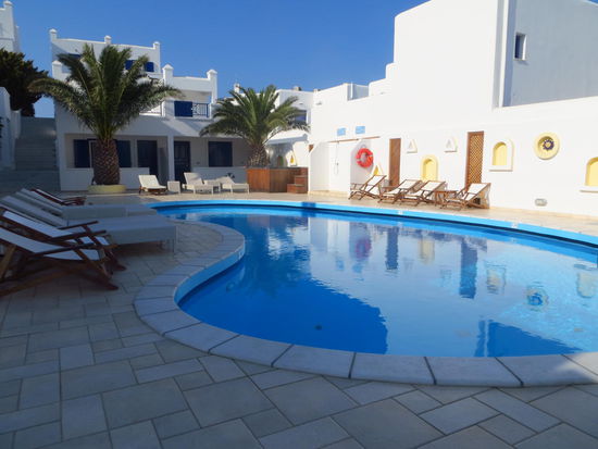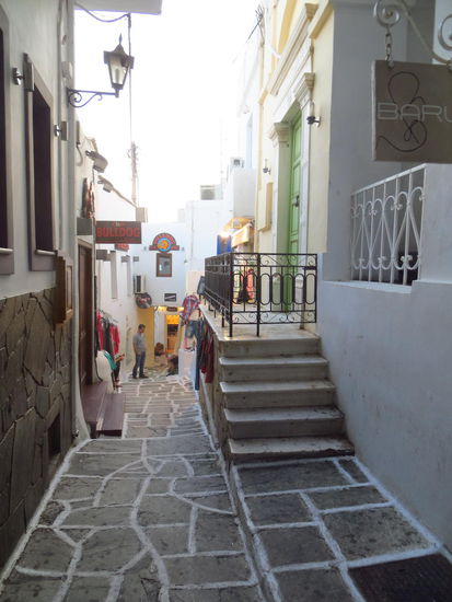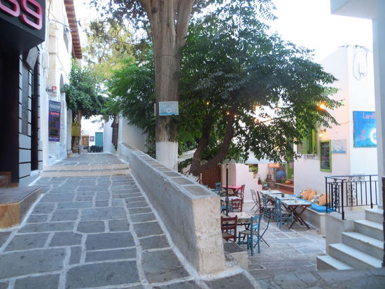 Diesmal ging es mit dem Highspeedboot in nur einer Stunde von Santorini nach Ios. Wir waren wieder gespannt, was uns auf der nächsten Insel erwartete. Wir wurden direkt vom Hafen abgeholt und ins Hotel gebracht. Eigentlich wollten wir uns direkt Chora ansehen, aber wir drehten dann doch schnell wieder m, weil die Mittagshitze nicht zu ertragen war. Stattdessen verbrachten wir den Nachmittag schwimmend und lesend am Pool. Ganz entspannt. Gegen Abend sind wir dann los in die Stadt und es war - warum wohl- viel mehr los als tagsüber. Auch Ios hat eine schöne Altstadt, die sich in einem Labyrinth aus engen und weißen Gassen um den Berg hinaufschraubt.
