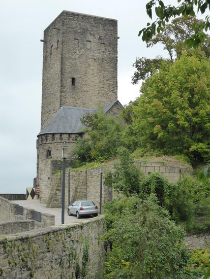 Der etwa 9*9 Meter breite Turm wird oft auch Bergfried genannt, seine heute vermauerte, rund 2,80 Meter breite Tordurchfahrt weist ihn jedoch als Torturm aus. Die Mauern im ersten Geschoss, das aus dem 13. Jahrhundert stammt, sind zwischen 2,50 und 3,40 Meter dick. Die höher liegenden Stockwerke sind späteren Bauepochen zuzuordnen. Der heutige Eingang liegt in etwa neun Metern Höhe. Von dort führt ein 0,65 Meter breiter Gang in der Mauerstärke zur obersten Turmebene.