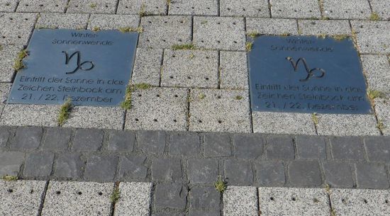 Diese sehr präzise Ausführung ermöglicht dem Besucher bei geeigneter Witterung eine genaue Ablesung der Uhrzeit (Wahre Ortszeit) und des Datums. Zu diesem Zweck sind zahlreiche Erläuterungen in die Fläche eingelassen worden. Eine Besonderheit ist, dass die Fläche absolut eben ausgeführt ist. Damit es zu keiner Pfützenbildung kommt, wurde poröses Pflaster verwendet, durch welches das Wasser in den Untergrund gelangt.