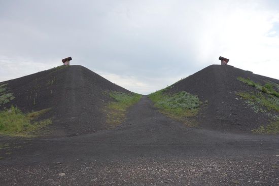 Die Halde ist heute überwiegend begrünt und über zahlreiche Pfade in Serpentinen (und natürlich auch über die Treppe) begehbar. Auf dem Gipfel befindet sich eine Schuttpyramide, die in der Mitte durch ein Tal durchschnitten wird. (es erinnert an mich an die Äußerung unseres Sizilien-Reiseführers am Ätna - wo eine Doppel-Lavapyramide den Namen 'Busen von Sophia Loren erhielt)