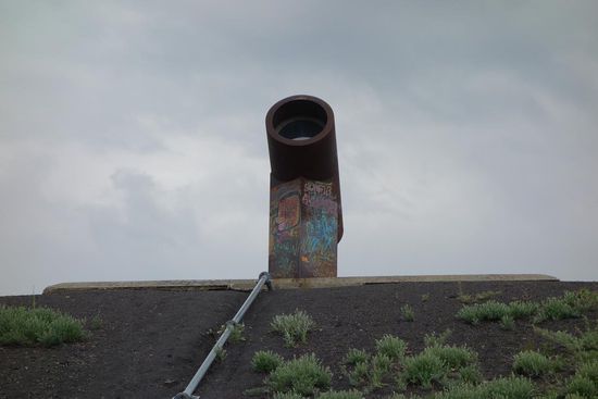 'Nachts ergänzen die Strahlen zweier rostiger Scheinwerfer die zerschnittene Pyramide optisch zu einer ganzen Pyramide. Die dicken, verrosteten Stahlröhren, die wie überdimensionale Fernrohre Richtung Himmel gerichtet sind, bilden die Lichtinstallation „Nachtzeichen“ von Hermann EsRichter aus Oberhausen und Klaus Noculak aus Berlin, die 1992 den Wettbewerb zur künstlerischen Gestaltung der Halde gewannen.' (Wikipedia)
