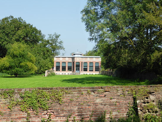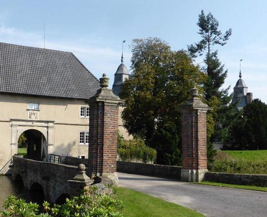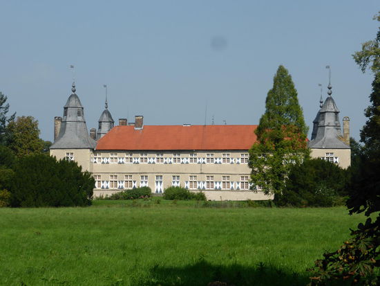 Die Besonderheit dieses Schlosses beruht nicht auf einer ereignisreichen Vergangenheit oder auf einer faszinierenden Baugeschichte. Vielmehr unterscheidet es sich von allen anderen Schlössern eher durch seinen ganz eigenen Charakter. Es ist zurückhaltend, wie die Einwohner dieses Landstrichs; es versteckt sich in den Hochwäldern und in den mit Hecken eingefriedeten Wiesen und Feldern; es scheint viel eher allein bleiben zu wollen, verborgen vor jedem Fremden, mit sich selbst und seiner kleinen Welt zufrieden. Dieses Dornröschenschloß wurde inmitten eines englischen Gartens errichtet. Es handelt sich hierbei um einen Komplex von Wassergräben, deren Ursprung im früheren Barockstil zu suchen ist, und dessen Prinzipien den Wassergräben der Burg des Mittelalters entsprechen. Zum Zeitpunkt der Erbauung wurden die Wassergräben ausgehoben, jedoch nicht zu Verteidigungszwecken (denn dieses System der Verteidigung war damals schon veraltet), sondern mit einer architektonischen Zielsetzung, die für den barocken Stil repräsentativ ist. Die Gesamtanlage erstreckt sich auf zwei rechteckigen Inseln; die Gebäude liegen auf der östlichen Insel, und der Garten befindet sich auf der westlichen Insel.