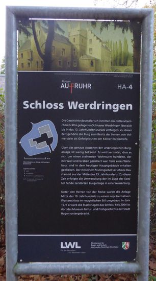 Das Wasserschloss Werdringen war ursprünglich ein Lehen der Herren von Volmestein und erfährt seine erste urkundliche Erwähnung zur Mitte des 13. Jahrhunderts. Damals gehörte es zum Besitz der Erzbischöfe von Köln. Im Territorium derer von Volmestein befand sich auch der Hof und die Kirche zu Hagen. Sie waren die Keimzelle der späteren Großstadt Hagen.