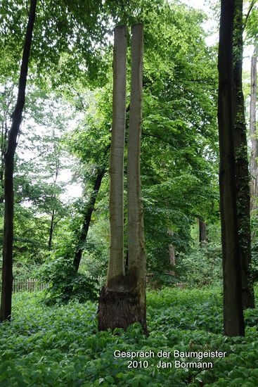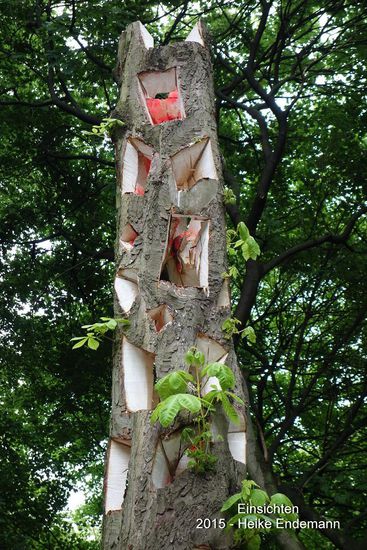 Auf originelle Art und Weise haben sich hier zeitgenössische Künstler des Baumbestandes im Park angenommen und Bäume wie Baumreste künstIerisch gestaltet.