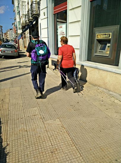 Heute wartet eine der längsten Etappen auf uns, entsprechend früh machen wir uns auf den Weg und haben nur leichtes Gepäck dabei. Etwa ab km 12 gibt es keine Wegweiser mit km-Angabe mehr, schade. Eher schweigsam ist unsere Pilger Gemeinschaft heute, schon auf das Ziel fokussiert nähern wir uns km um km Santiago. Der Nebel lichtet sich irgendwann, es bleibt aber ein trüber Tag. Wir lassen keine Stempelstelle mehr aus, der Pilgerpass soll schließlich noch voll werden. Um ca. 14:00 sind wir am Gozo-Hügel angekommen. Von dort bietet sich der erste Blick auf Santiago de Compostela. Es ist noch ein bisschen unwirklich, doch es scheint, als hätten wir es tatsächlich bald geschafft. Nach einer kleinen Stärkung nehmen wir das letzte Teilstück in Angriff: durch die Außenbezirke und die Stadteinfahrt ins historische Zentrum der Stadt. Nun beginnt es zu regnen, Helmut und Maria packen die Pellerinen aus während Eva und Florian die Entscheidung zum leichten Gepäck bitterlich bereuen, denn die bislang nie verwendeten Regenjacken und -hosen sind heute nicht mit dabei (das machen wir NIE wieder). Behelfspellerinen aus Müllsäcken lehnen wir ab: dann lieber nass!