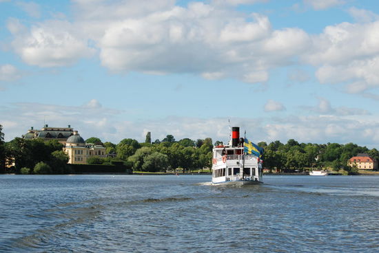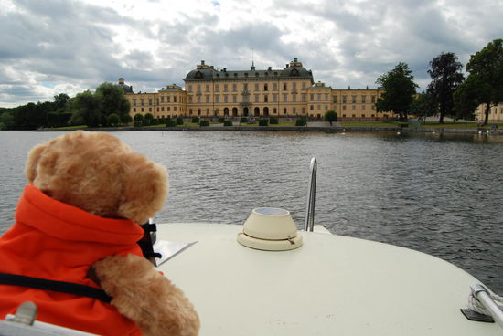 Königs waren nicht zu Hause, es wehte nur ein Wimpel auf dem Schloß. Im Sommer sind sie immer auf Öland und feiern Kronprinsesan Victorias Geburtstag am 14 Juli. Gegenüber des Schlosses fanden wir eine kleine Bucht, wo wir rasten konnten. In regelmäßigen Abständen kamen die alten Ausflugsboote und schütteten die Touristen am Schloß aus.