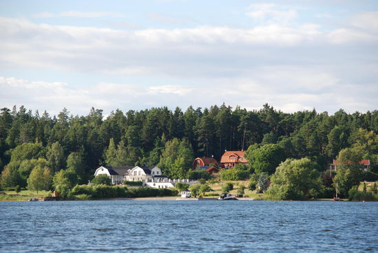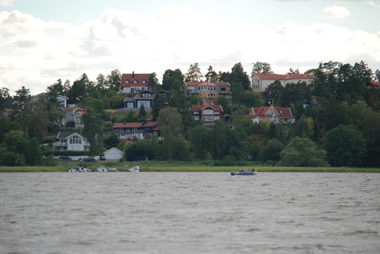 Dann fuhren wir weiter und kamen bald durch eine engere Stelle, wo auch ein Cafe lag. Da das Wetter so schön war, war auch hier viel Betrieb. Auf dem Wasser hielt es sich aber trotz der Nähe zu Stockholm in Grenzen. So fanden wir eine schöne Bucht der Insel Ekerön zum Übernachten.