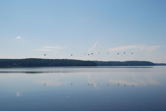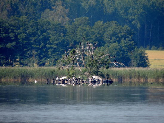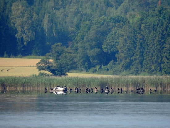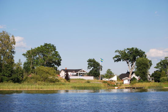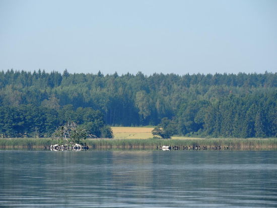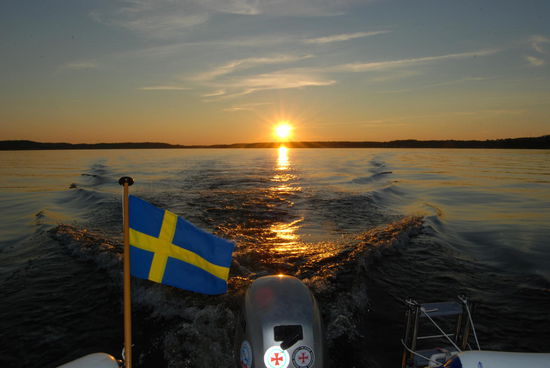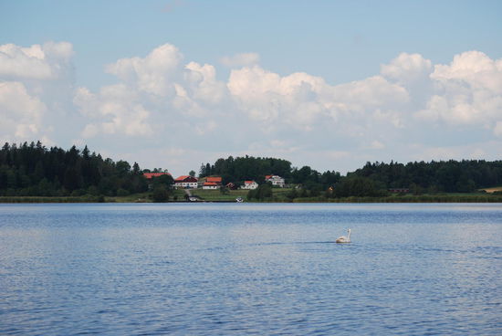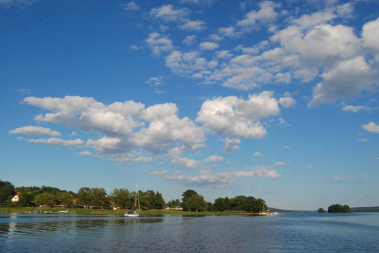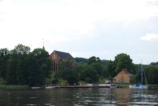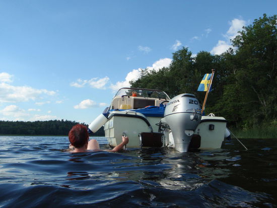 Wasservögel gab es hier wieder jede Menge, die wir beim Frühstück beobachten konnten. Nachdem wir noch den südlicheren Seenteil abgefahren hatten, ging der Kurs wieder zurück in Richtung Sigtuna. Wie am Vortag passierten wir das Schloß Skokloster. An Land herrschte ein ziemlicher Touristenrummel, auf dem Wasser hatten wir es besser. Zwischen ein paar Inseln machten wir Rast und kletterten von unserer Badeleiter ins Wasser. Das war erfrischend bei der Hitze!