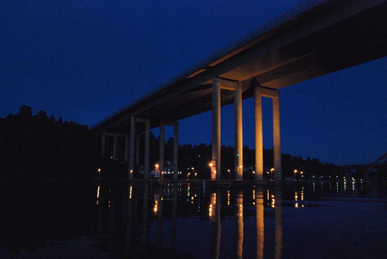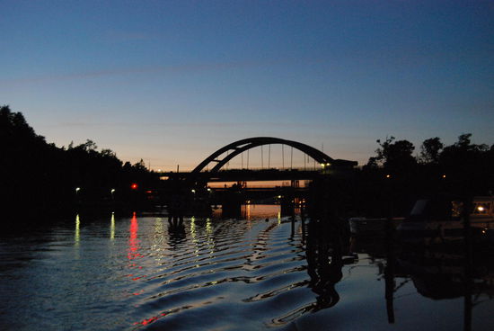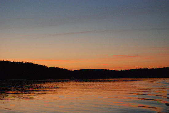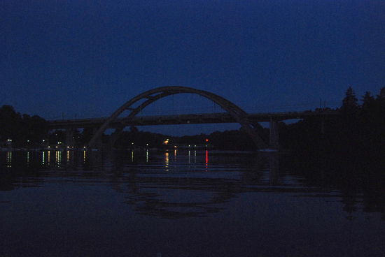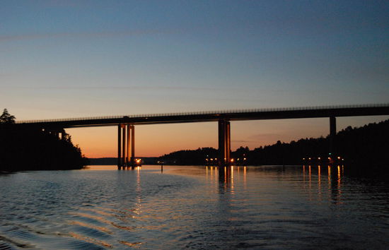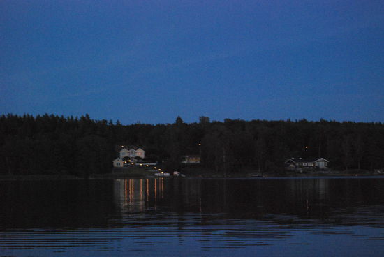In Sigtuna wollten wir noch eine Kleinigkeit am Hafen essen, aber der Ansturm war so groß, daß wir ziemlich lange warten mußten. So fuhren wir dann in die Abenddämmerung hinein in Richtung Kungsängen. Es war sehr interessant mit all den Beleuchtungen in der Dunkelheit zu fahren. Wobei, ganz dunkel war es hier natürlich nicht, im Norden war der Himmel herrlich rotorange.