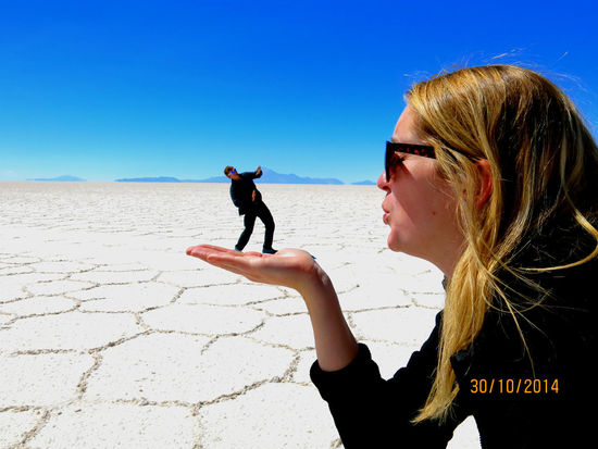 Einige Zeit später begann dann der Salzsee, Salar de Uyuni, dessen Überquerung (er ist immerhin über 10.000 km2 groß) den restlichen Tag dauerte.