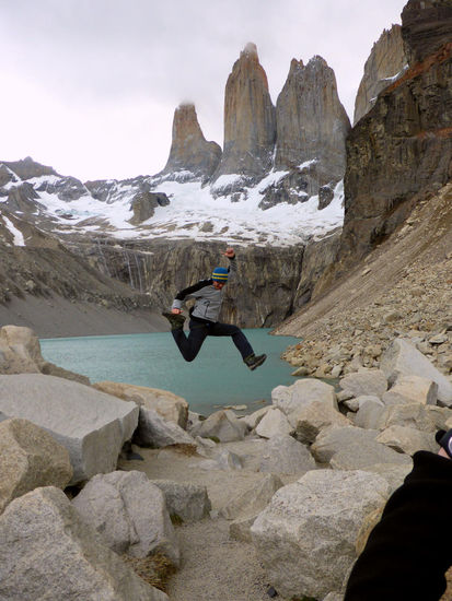Nach einer kurzen Mittagspause erklommen wir die letzten paar Meter zu den Torres, den Wahrzeichen und Namensgebern des Parks. Die "Türme des blaue Himmels" zeigten sich heute von ihrer besten Seite und wir konnten sie ohne Nebel und mit etwas Sonne betrachten. Der 45 minütige Anstieg hat sich auf jeden Fall gelohnt, in Echt sind die Berge beeindruckend, diesen Eindruck auf Fotos einzufangen ist recht schwer, aber wir (also Flo und Daniel) habens ganz gut hinbekommen .